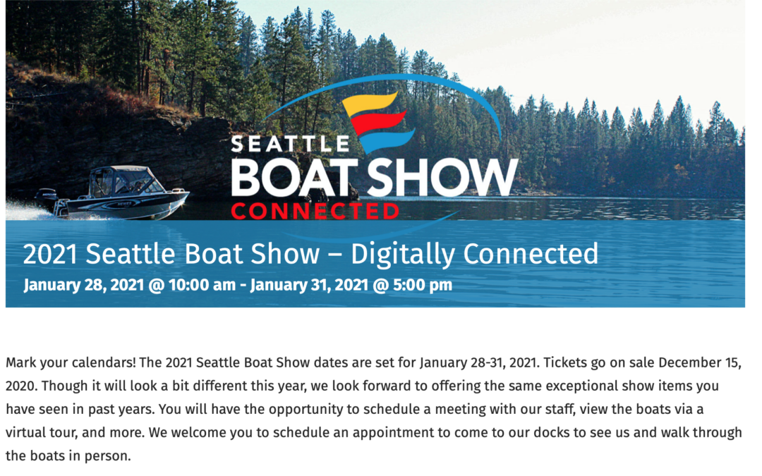 Come see us at the Seattle Boat Show January 30-February 7 (Lumen Field Event Center & Bell Harbor Marina)